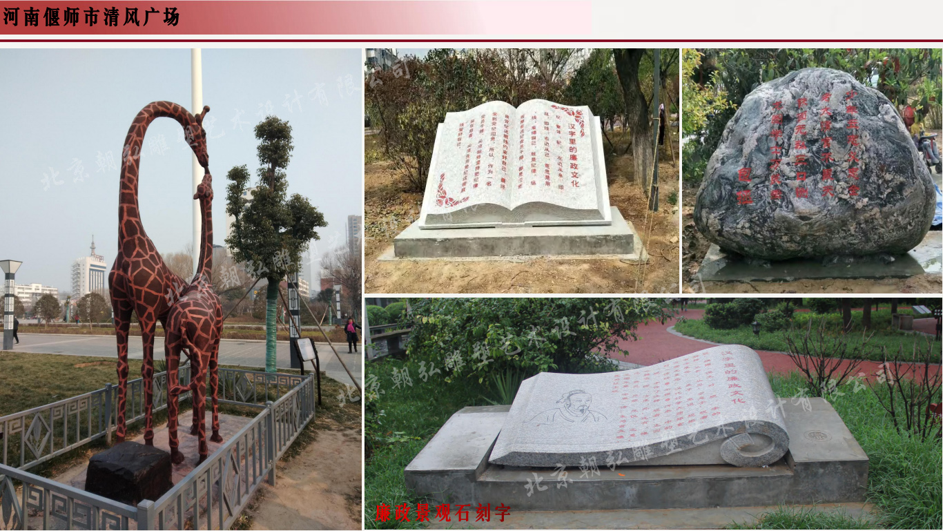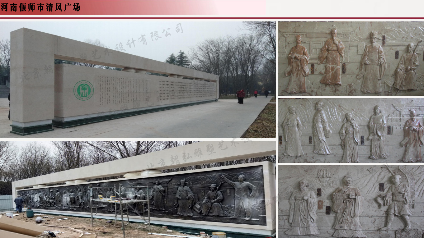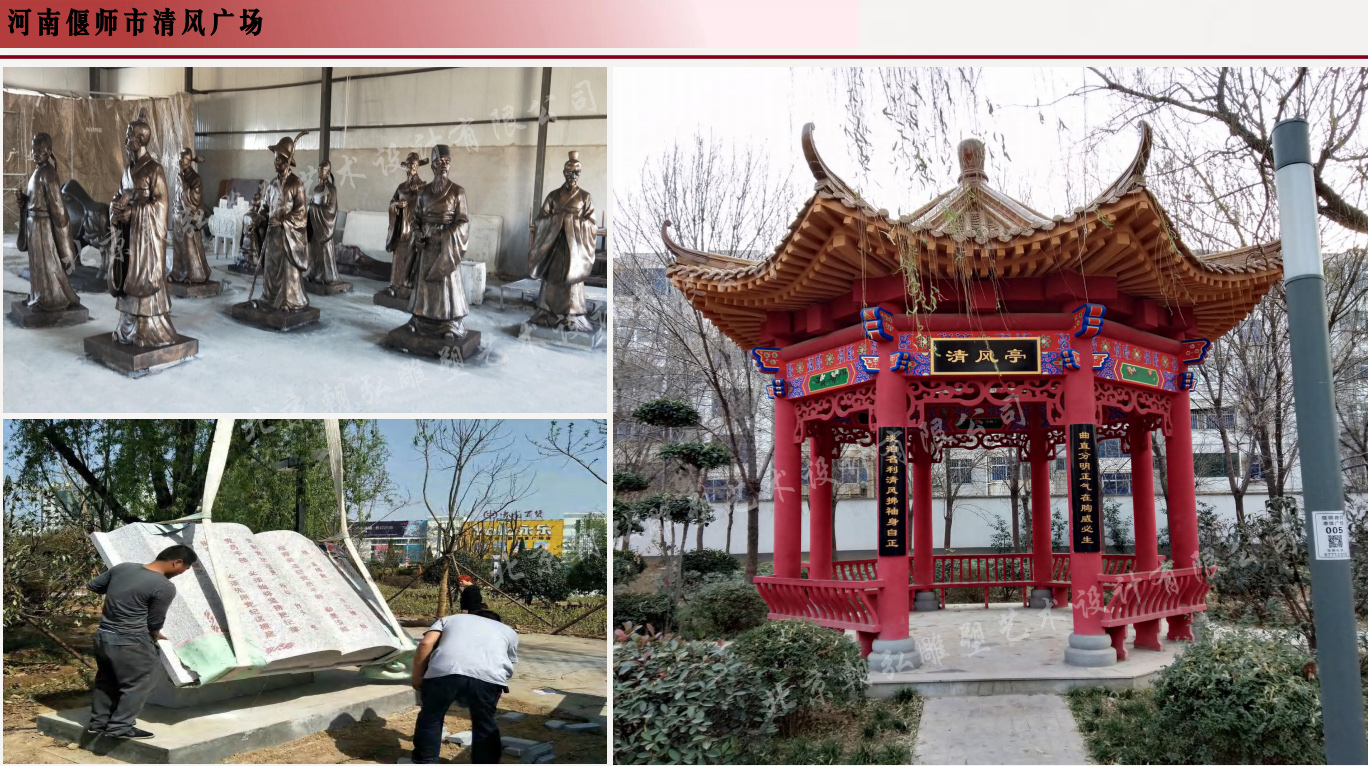 河南偃師市《清風公園》是北京朝弘雕塑公司承接的一個典型案例工程,整體風格古風古氣,恢弘大氣。集合景觀雕塑、古風建筑、任務雕塑為一體的工程。